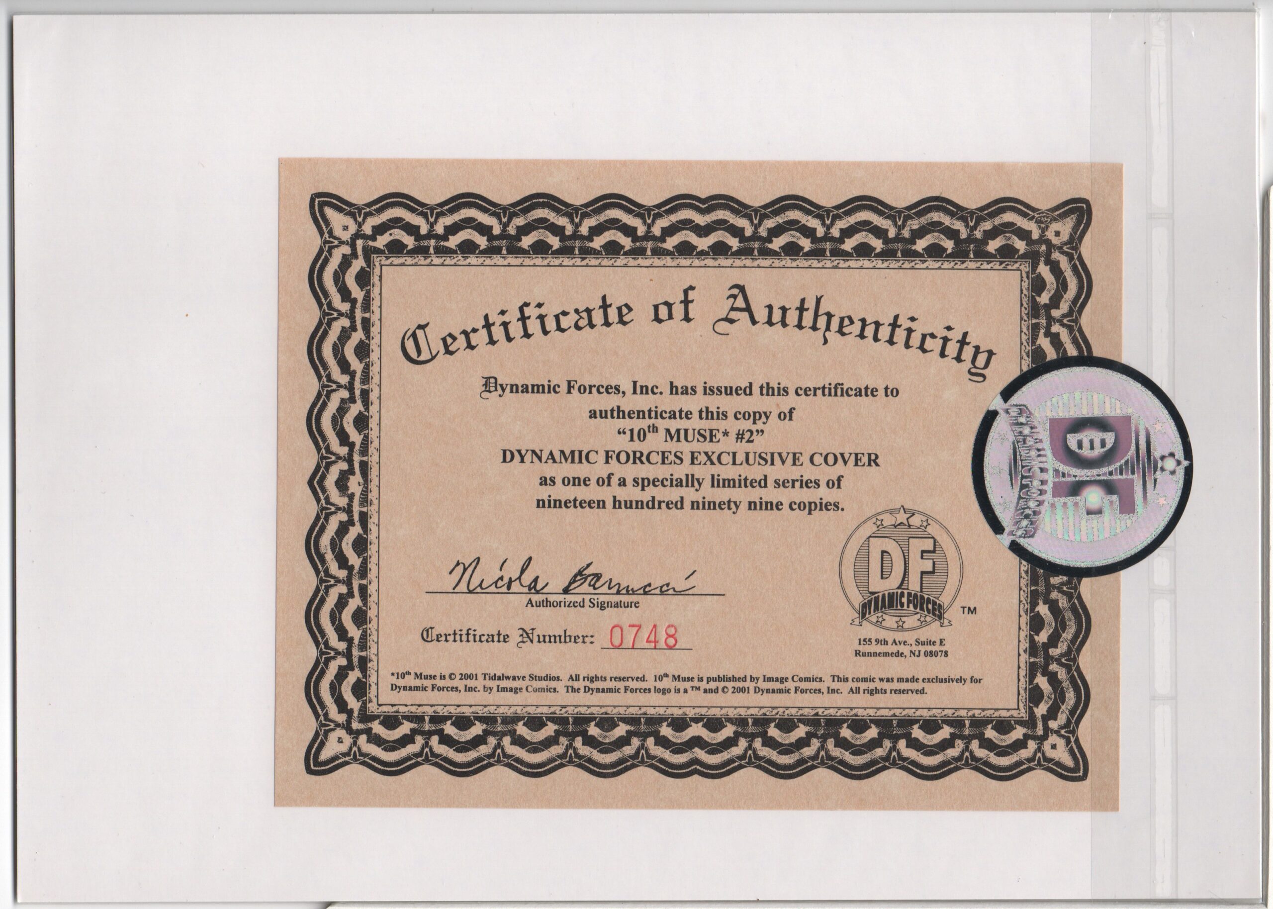 CERTIFICATE OF AUTHENTICITY ISSUED BY DYNAMIC FORCES