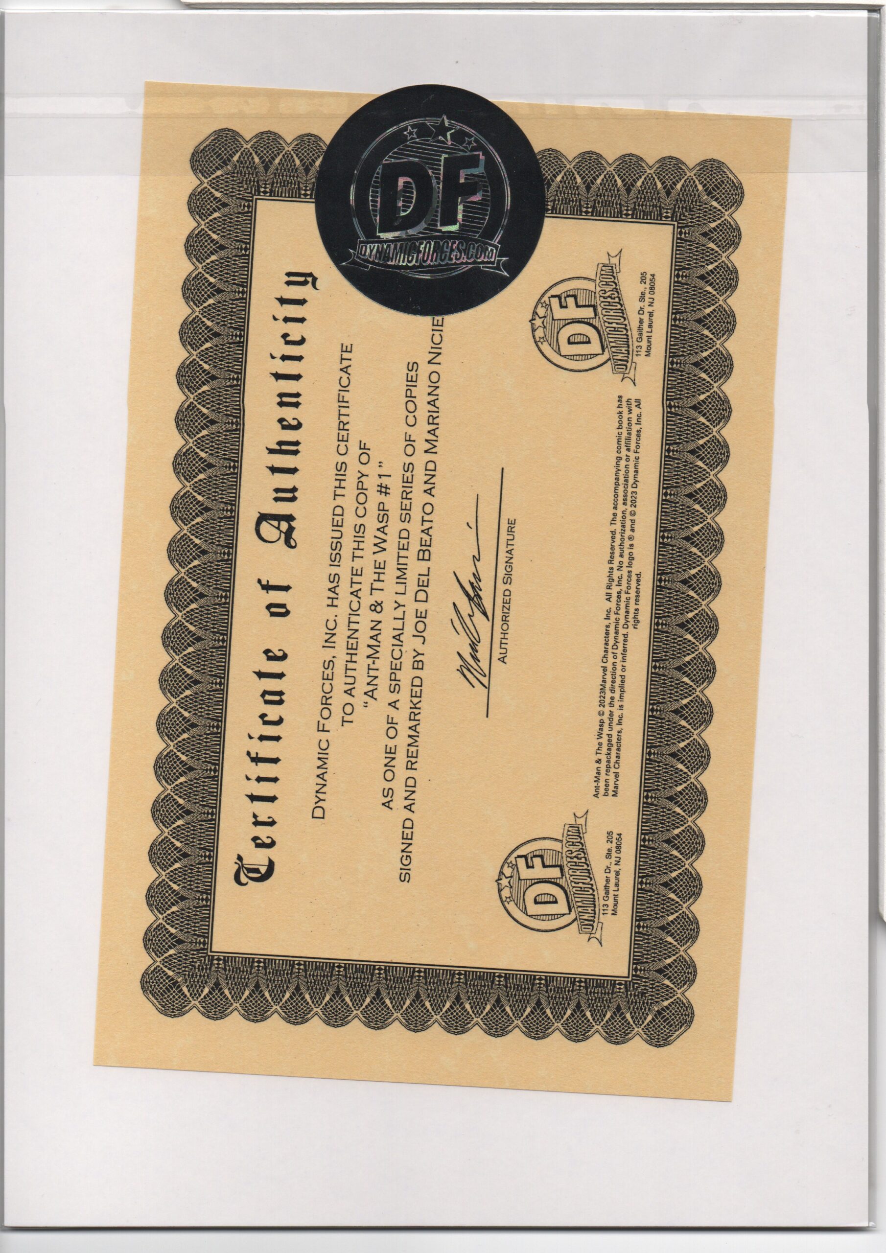 ANT-MAN & THE WASP #1 – SIGNED & REMARKED – JOE DEL BEATO – MARIANO NICEZA – W/COA
