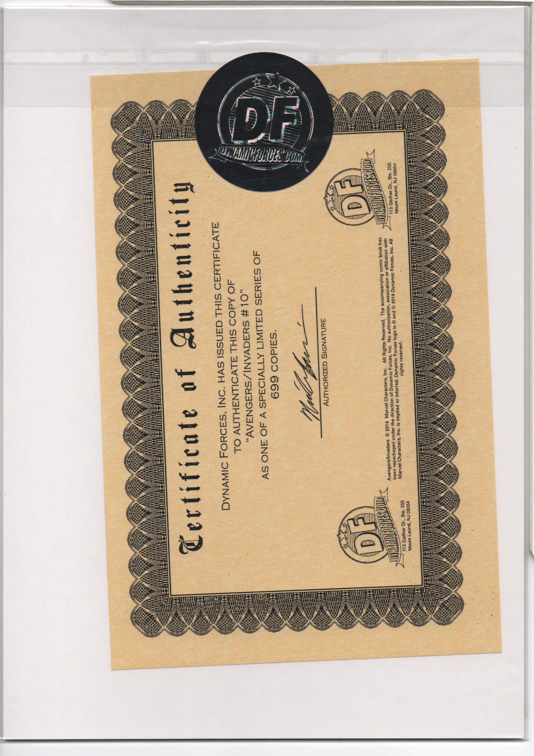 CERTIFICATE OF AUTHENTICITY ISSUED BY DYNAMIC FORCES