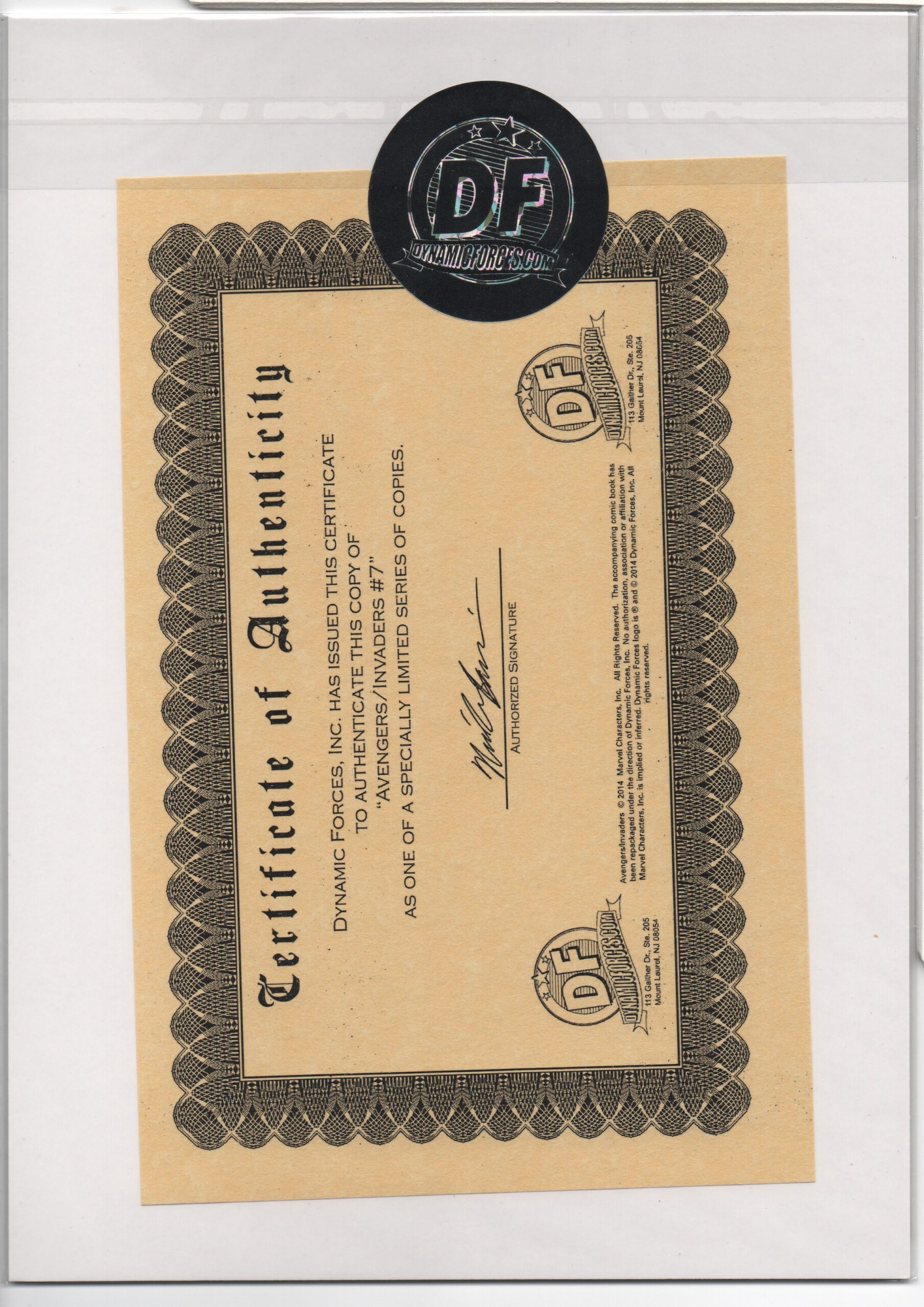 CERTIFICATE OF AUTHENTICITY ISSUED BY DYNAMIC FORCES