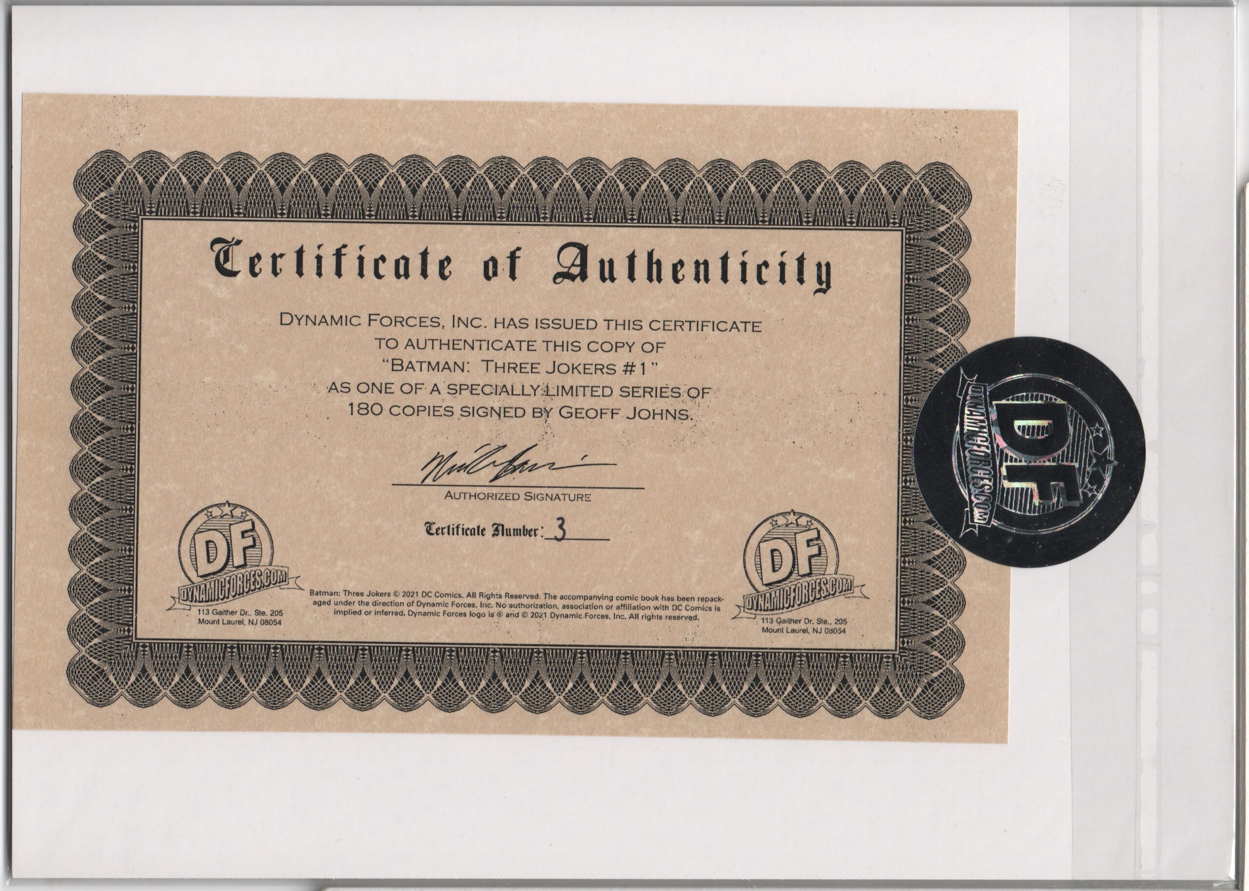 BATMAN: THREE JOKERS #1 – DC BLACK LABEL – SIGNED GEOFF JOHNS – W/COA – JASON FABOK COVER