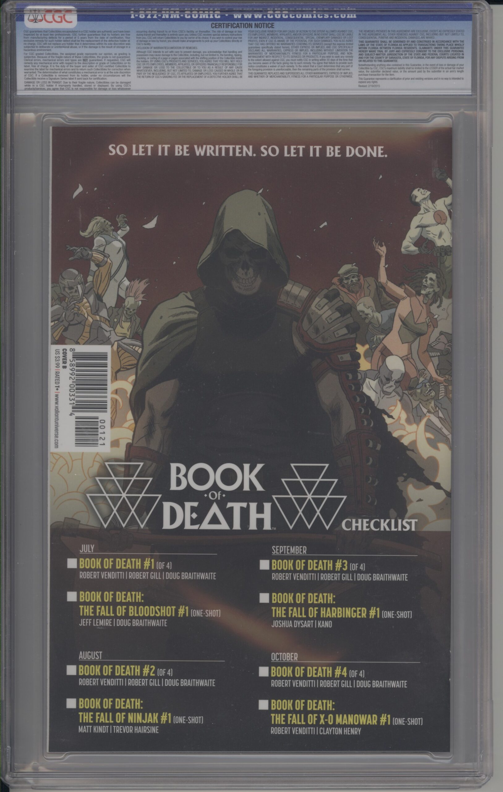 BOOK OF DEATH #1 – CGC 9.8 NM/M – 1ST APPEARANCES – CARY NORD VARIANT – 2015