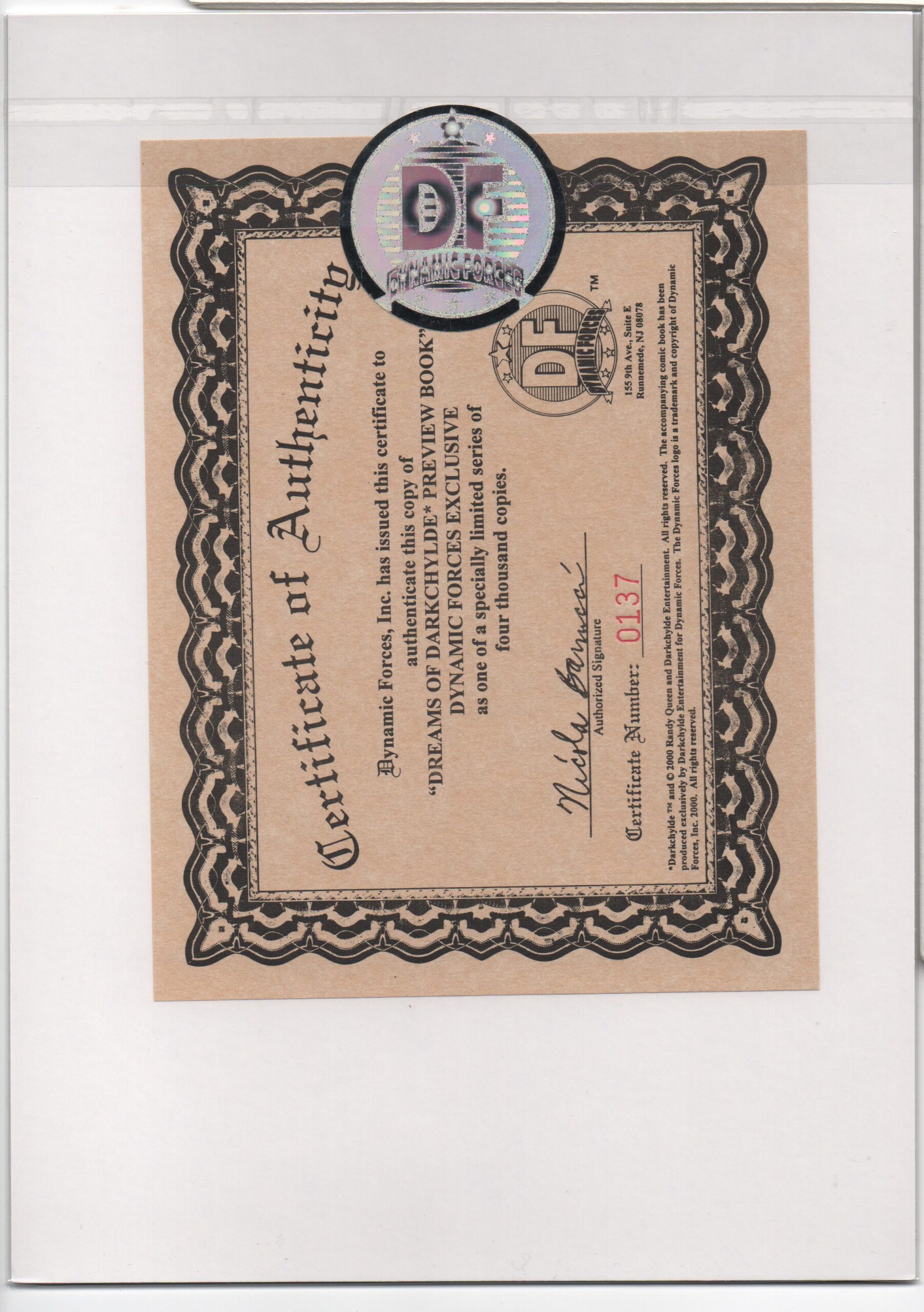 DARKCHYLDE: 2000 PREVIEW #1 – DYNAMIC FORCES EXCLUSIVE – NUMBERED COA – LTD