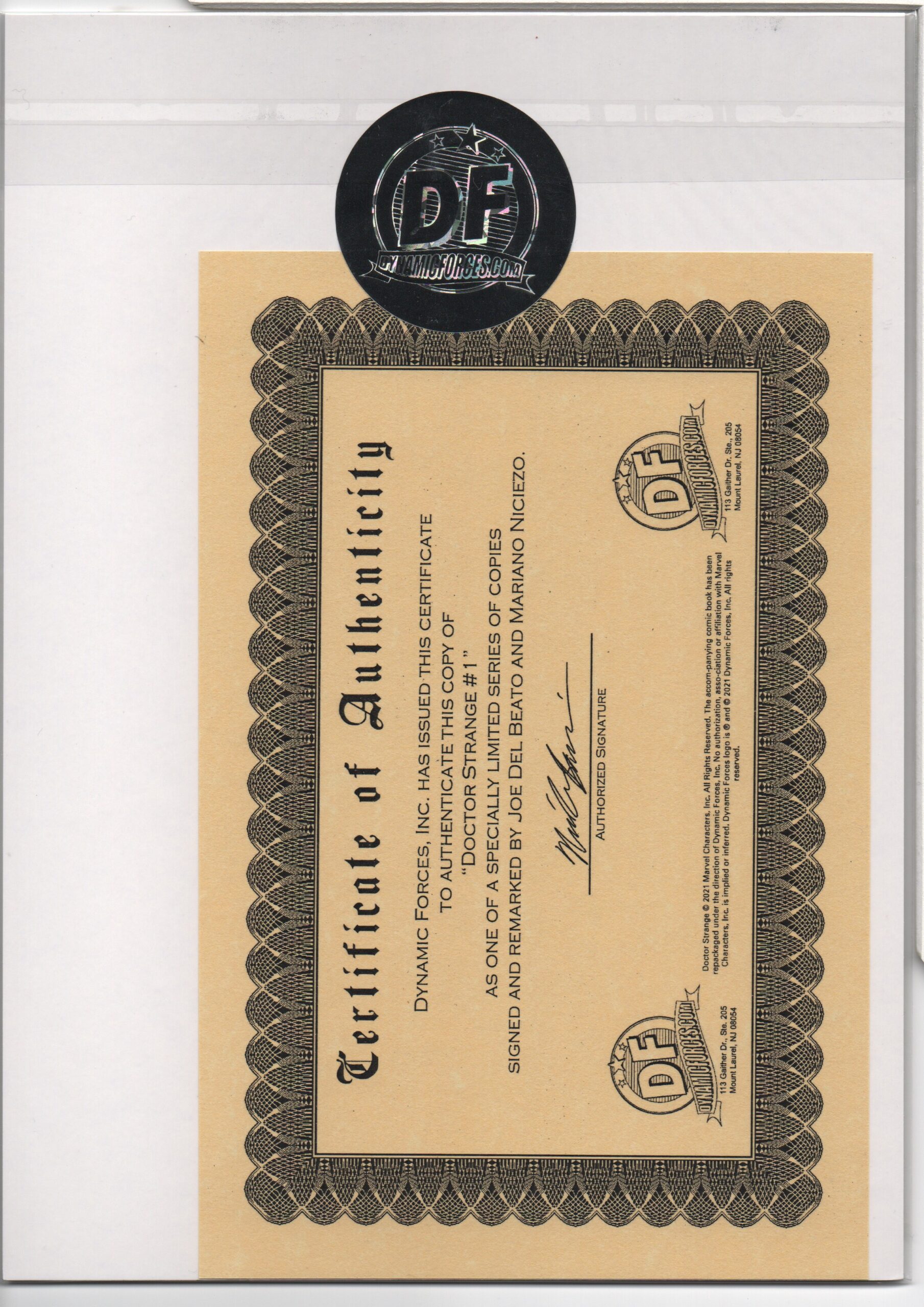 DOCTOR STRANGE #1 – SIGNED & REMARKED – JOE DEL BEATO – MARIANO NICEZA – W/COA