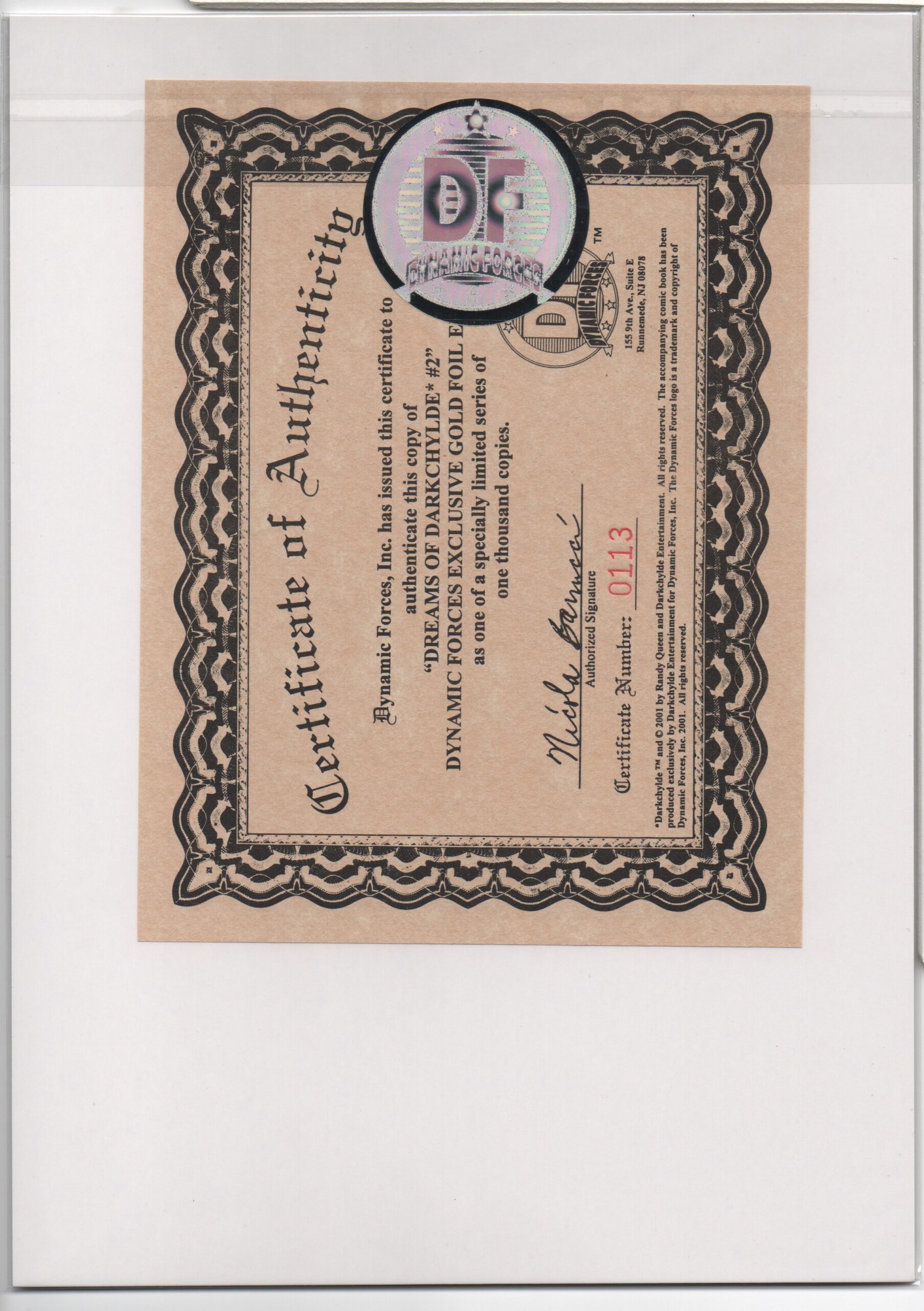 CERTIFICATE OF AUTHENTICITY ISSUED BY DYNAMIC FORCES