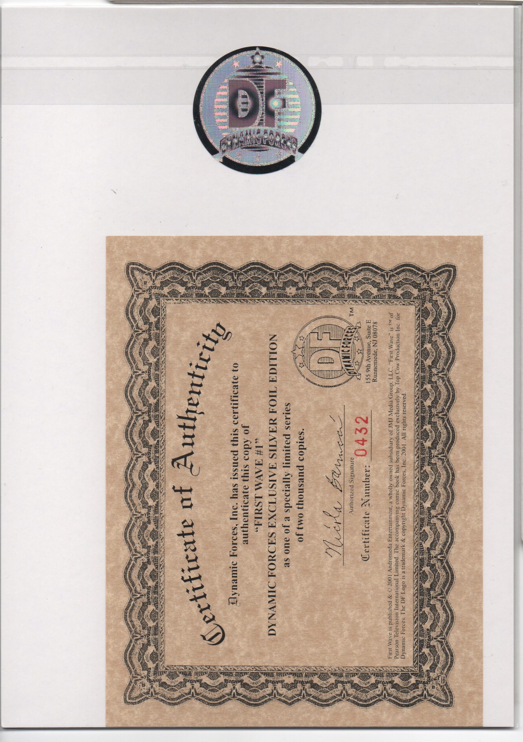CERTIFICATE OF AUTHENTICITY ISSUED BY DYNAMIC FORCES