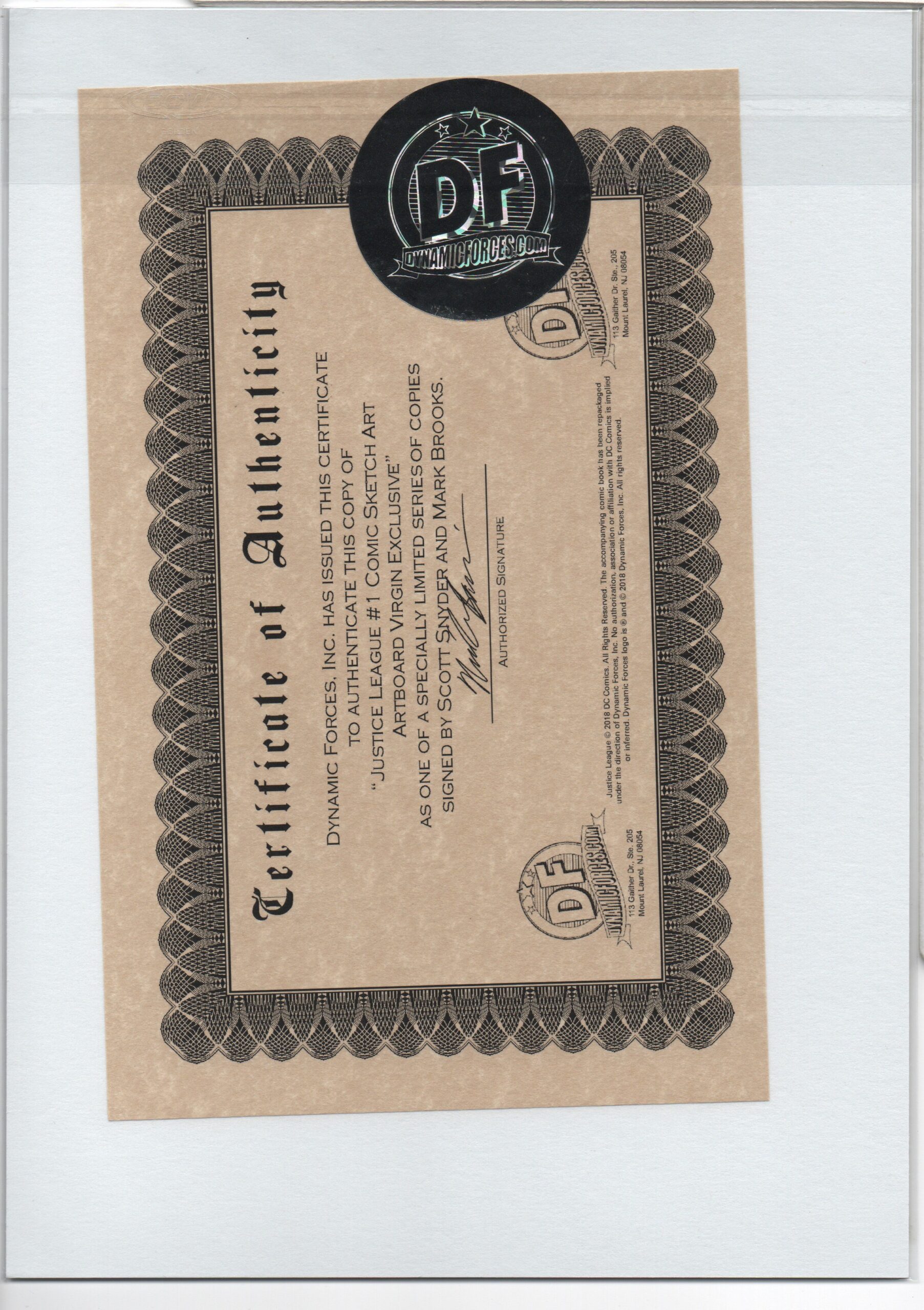 CERTIFICATE OF AUTHENTICITY ISSUED BY DYNAMIC FORCES