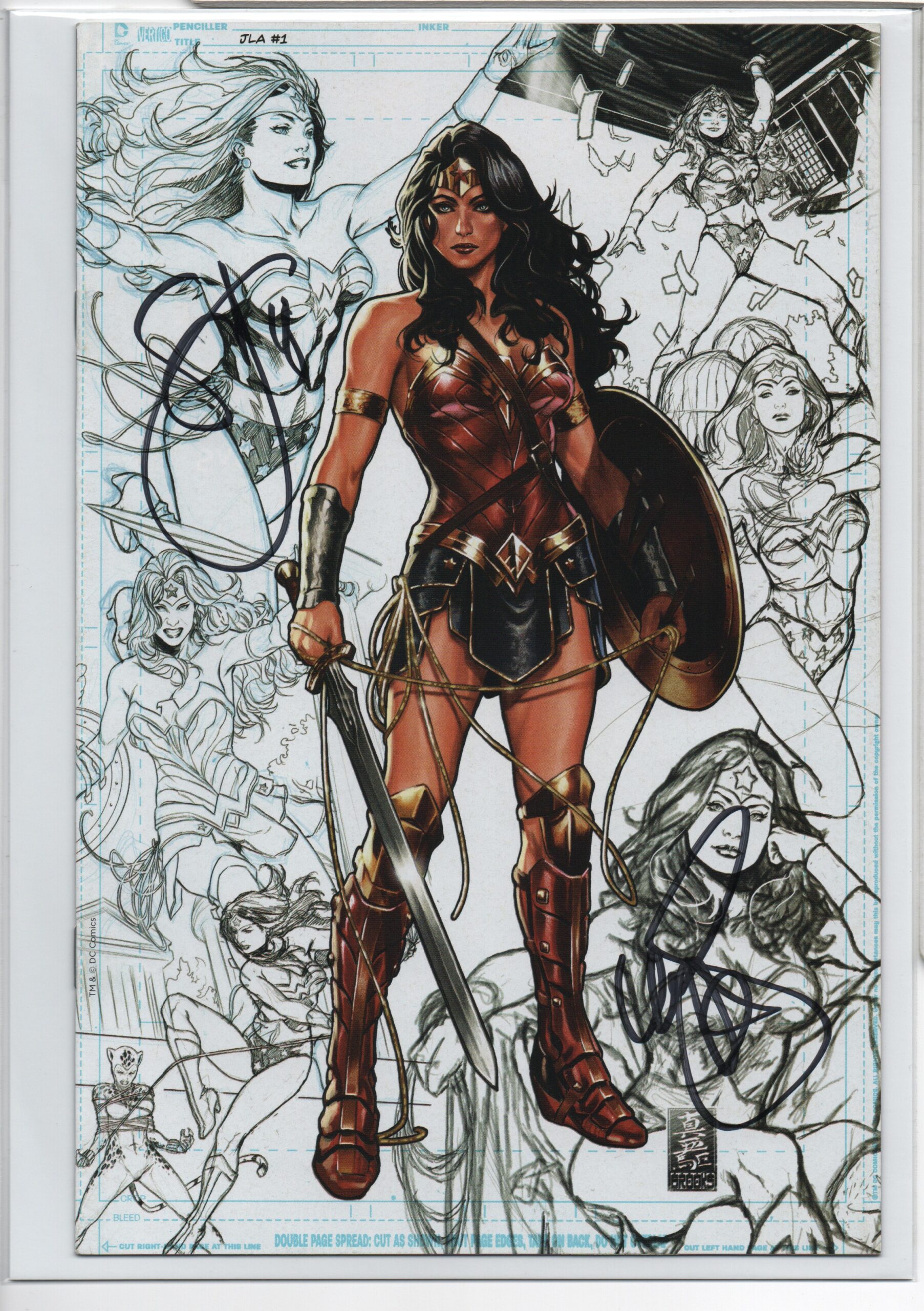 JUSTICE LEAGUE #1 – BROOKS RED ARMOR – VIRGIN CONCEPT SKETCH – CSA EXC – SIGNED 2X – LTD TO 250