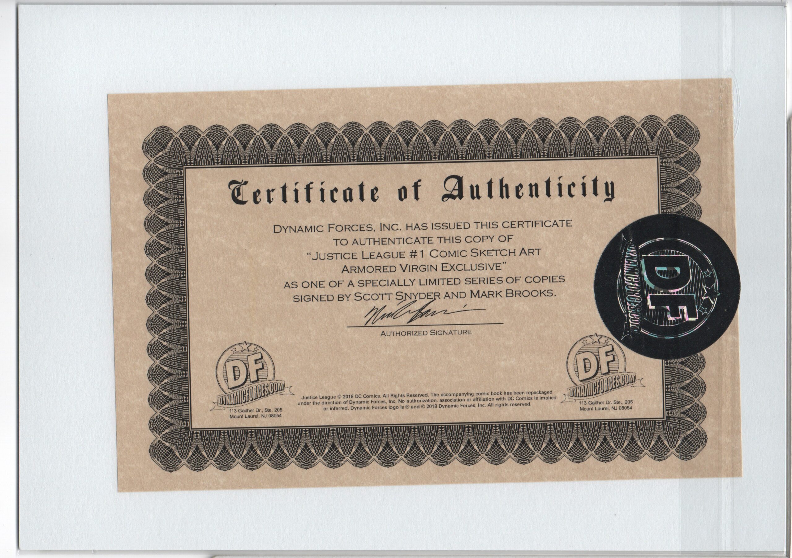 JUSTICE LEAGUE #1 – MARK BROOKS BROWN ARMOR VIRGIN VARIANT – COMIC SKETCH ART EXCLUSIVE – SIGNED 2X – LIMITED TO 2000
