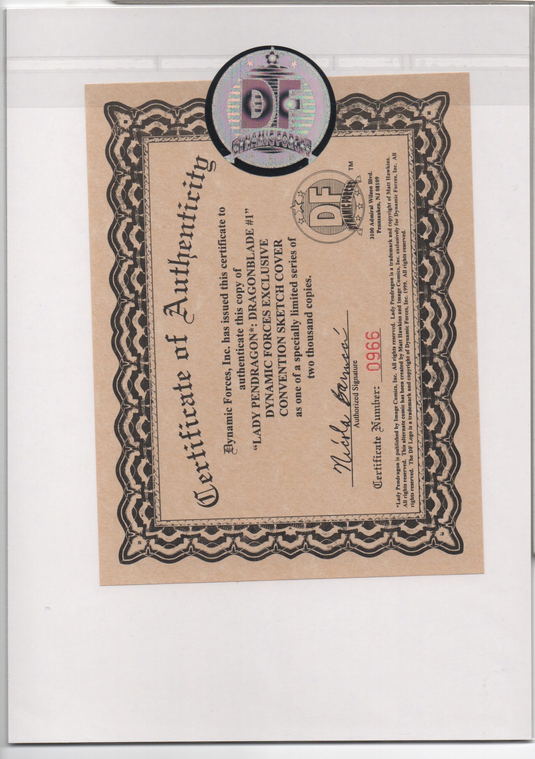 CERTIFICATE OF AUTHENTICITY ISSUED BY DYNAMIC FORCES