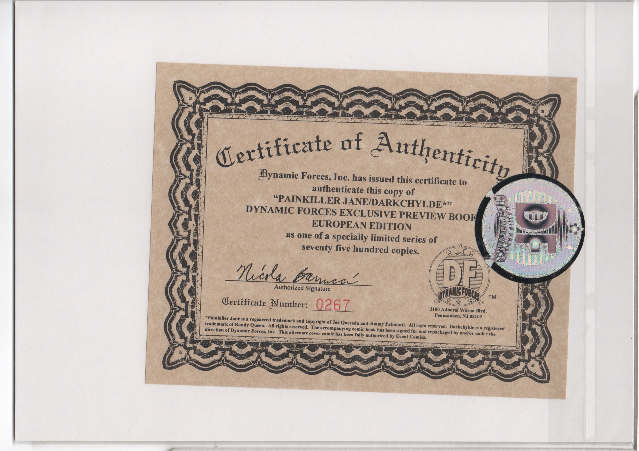 CERTIFICATE OF AUTHENTICITY ISSUED BY DYNAMIC FORCES