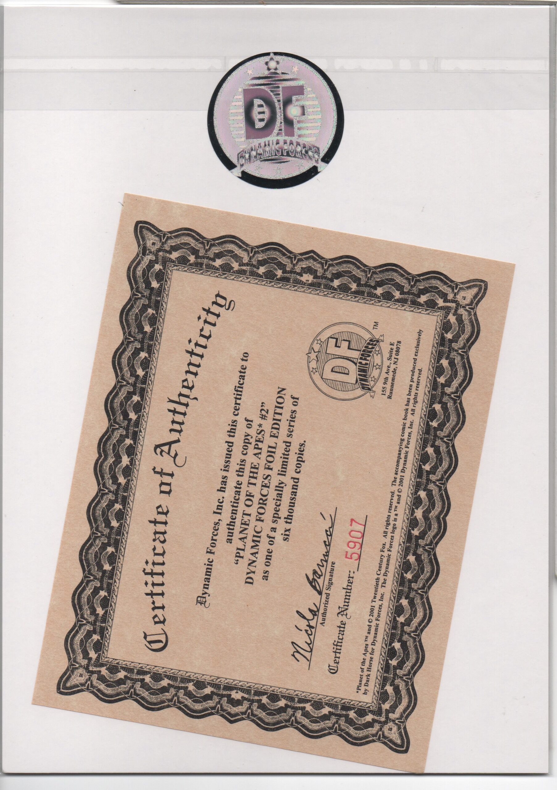 CERTIFICATE OF AUTHENTICITY ISSUED BY DYNAMIC FORCES