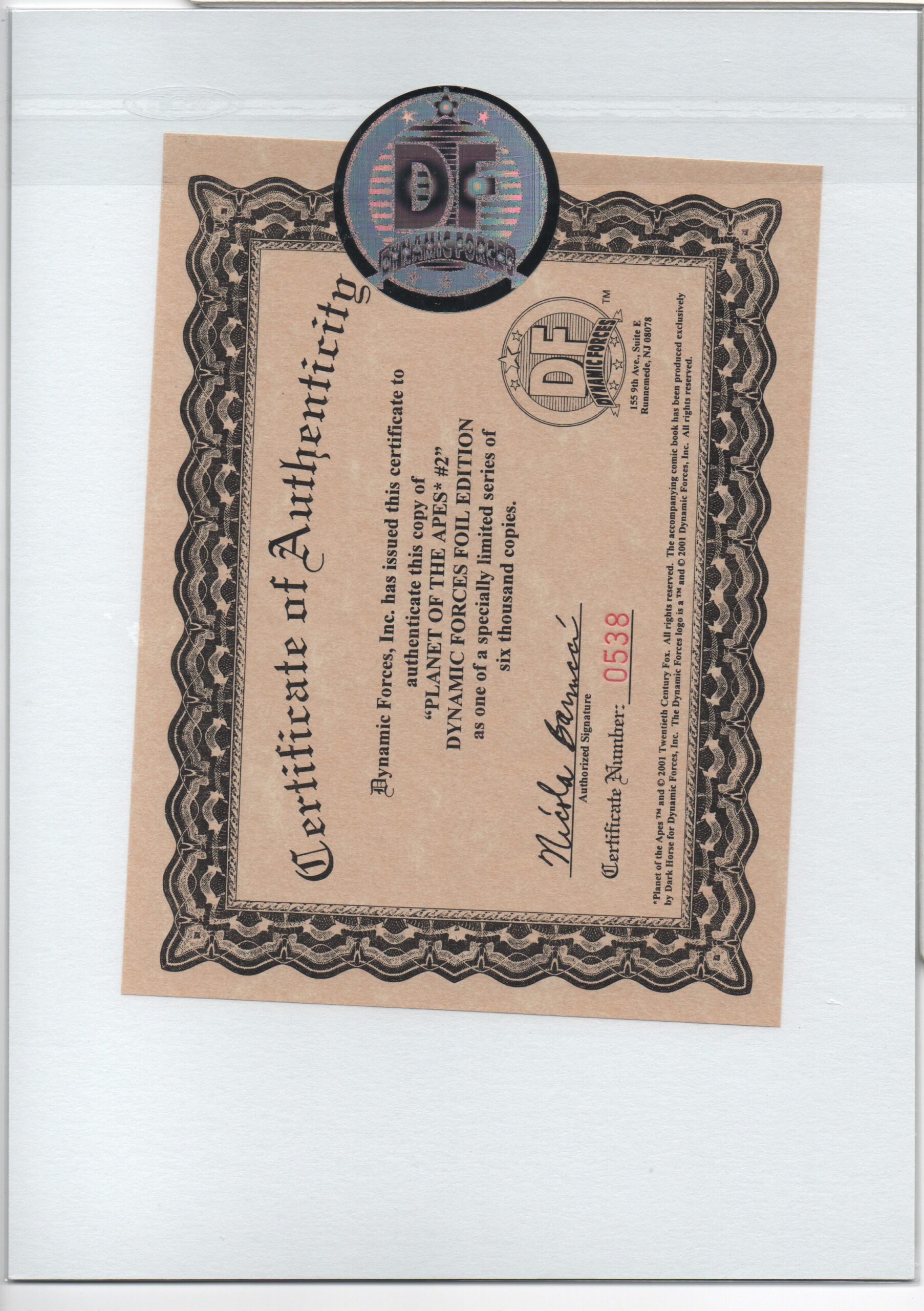 CERTIFICATE OF AUTHENTICITY ISSUED BY DYNAMIC FORCES