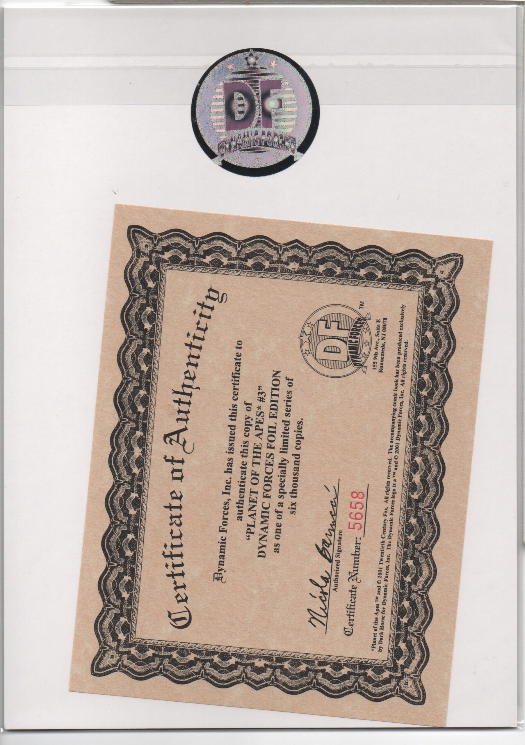 CERTIFICATE OF AUTHENTICITY ISSUED BY DYNAMIC FORCES