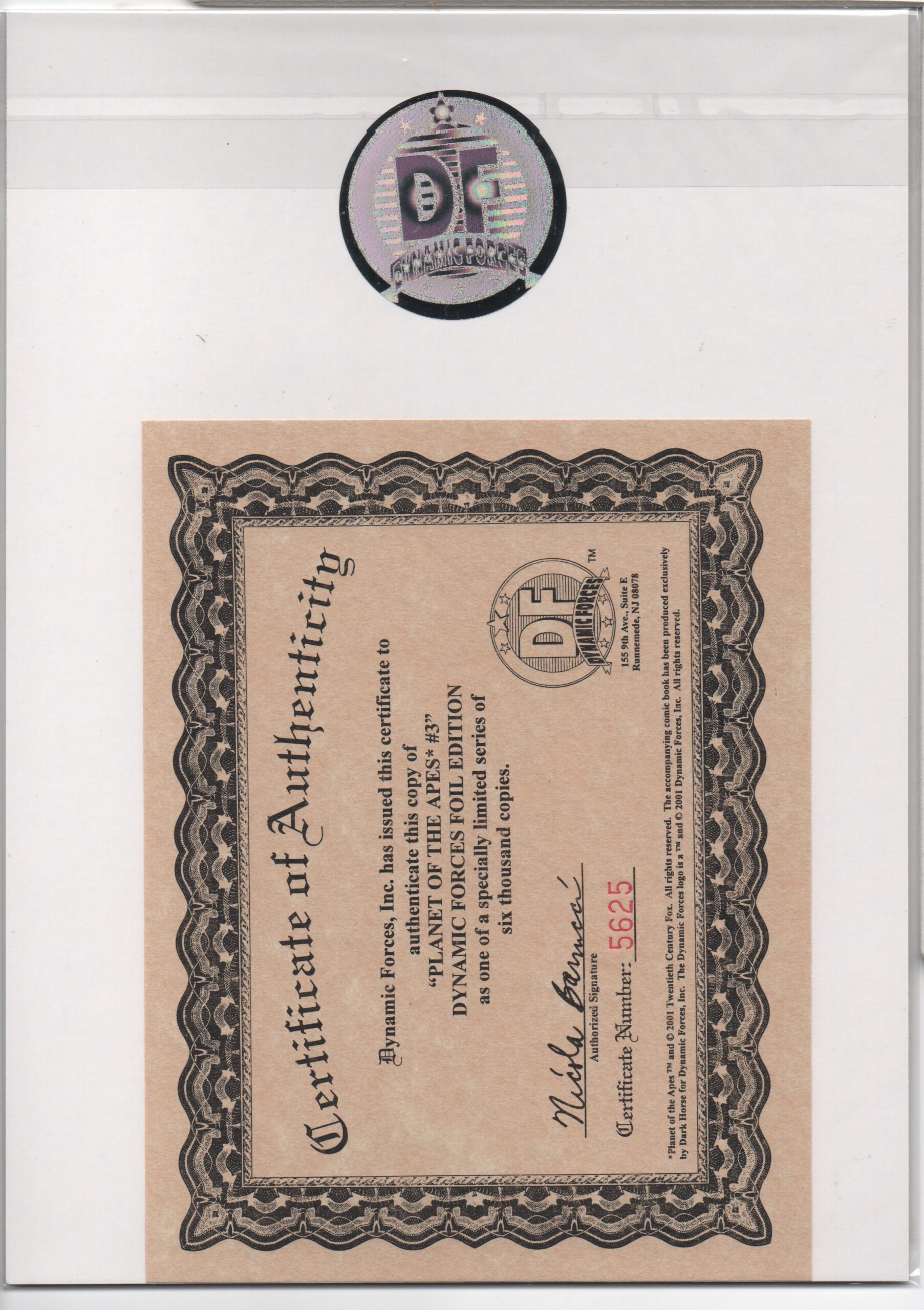 CERTIFICATE OF AUTHENTICITY ISSUED BY DYNAMIC FORCES