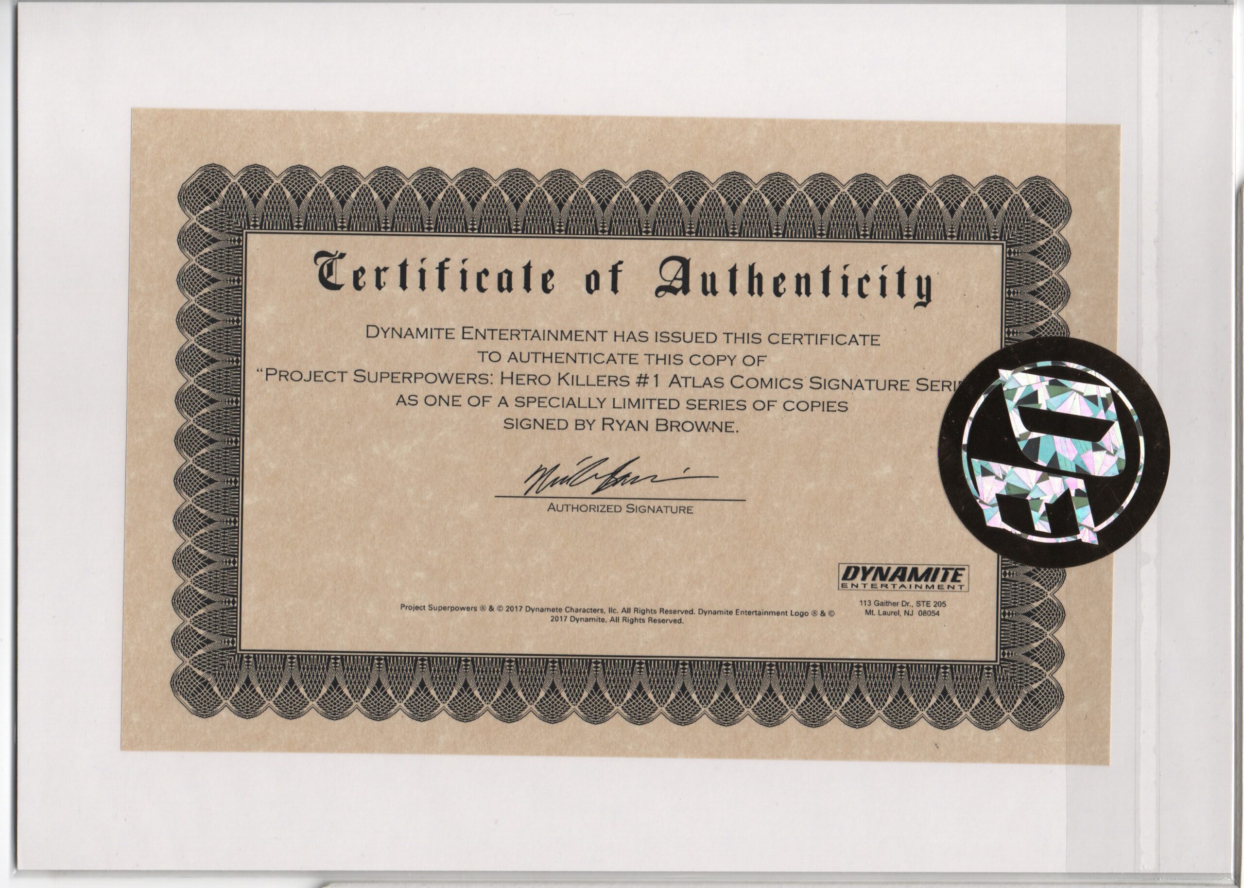 CERTIFICATE OF AUTHENTICITY ISSUED BY DYNAMITE ENTERTAINMENT