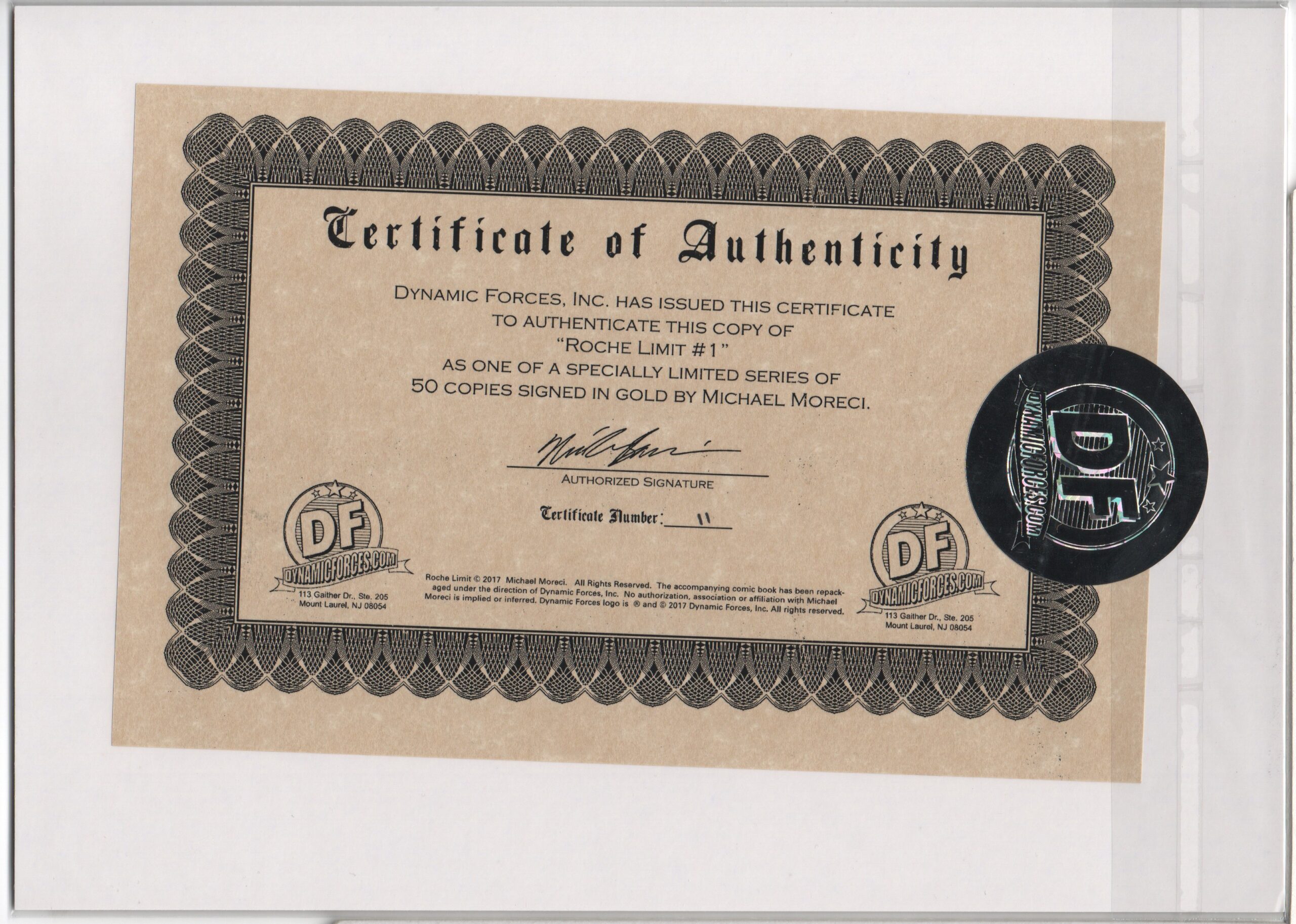 CERTFICATE OF AUTHENTICITY ISSUED BY DYNAMIC FORCES