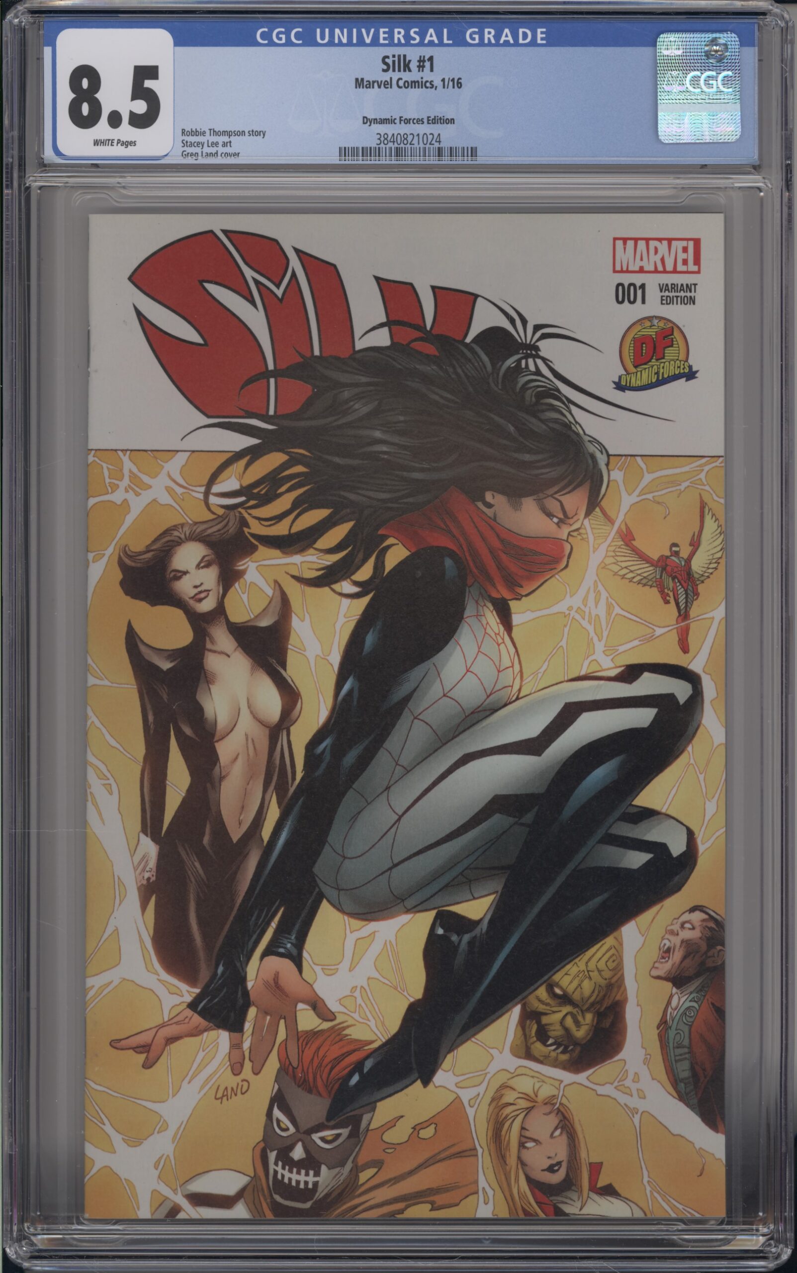 SILK #1 – CGC 8.5 VF+DF EXCLUSIVE – GREG LAND VARIANT – W/COA – KEY ISSUE – 1ST APPEARANCE OF SPECTRO – 2016