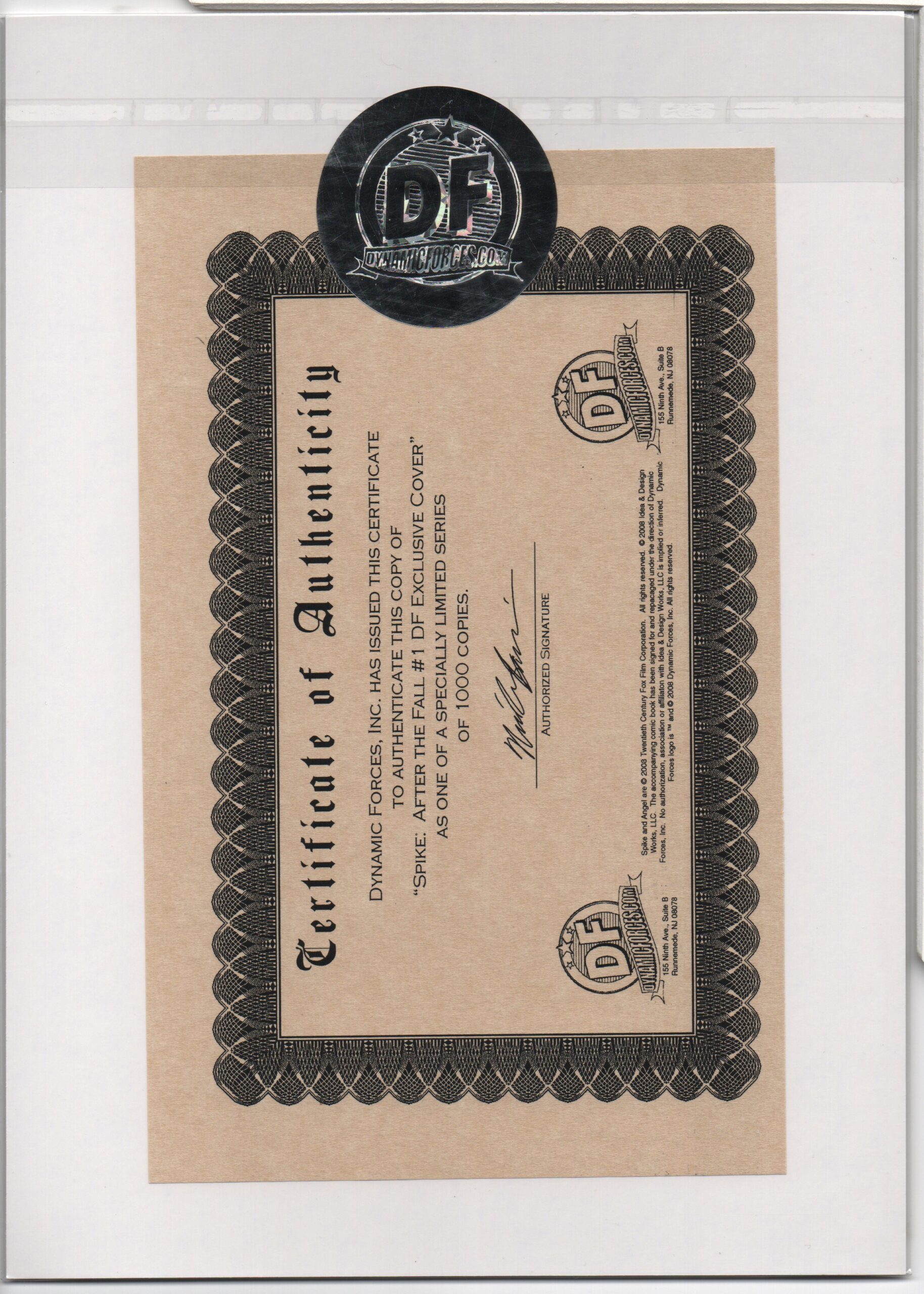 CERTIFICATE OF AUTHENTICITY ISSUED BY DYNAMIC FORCES
