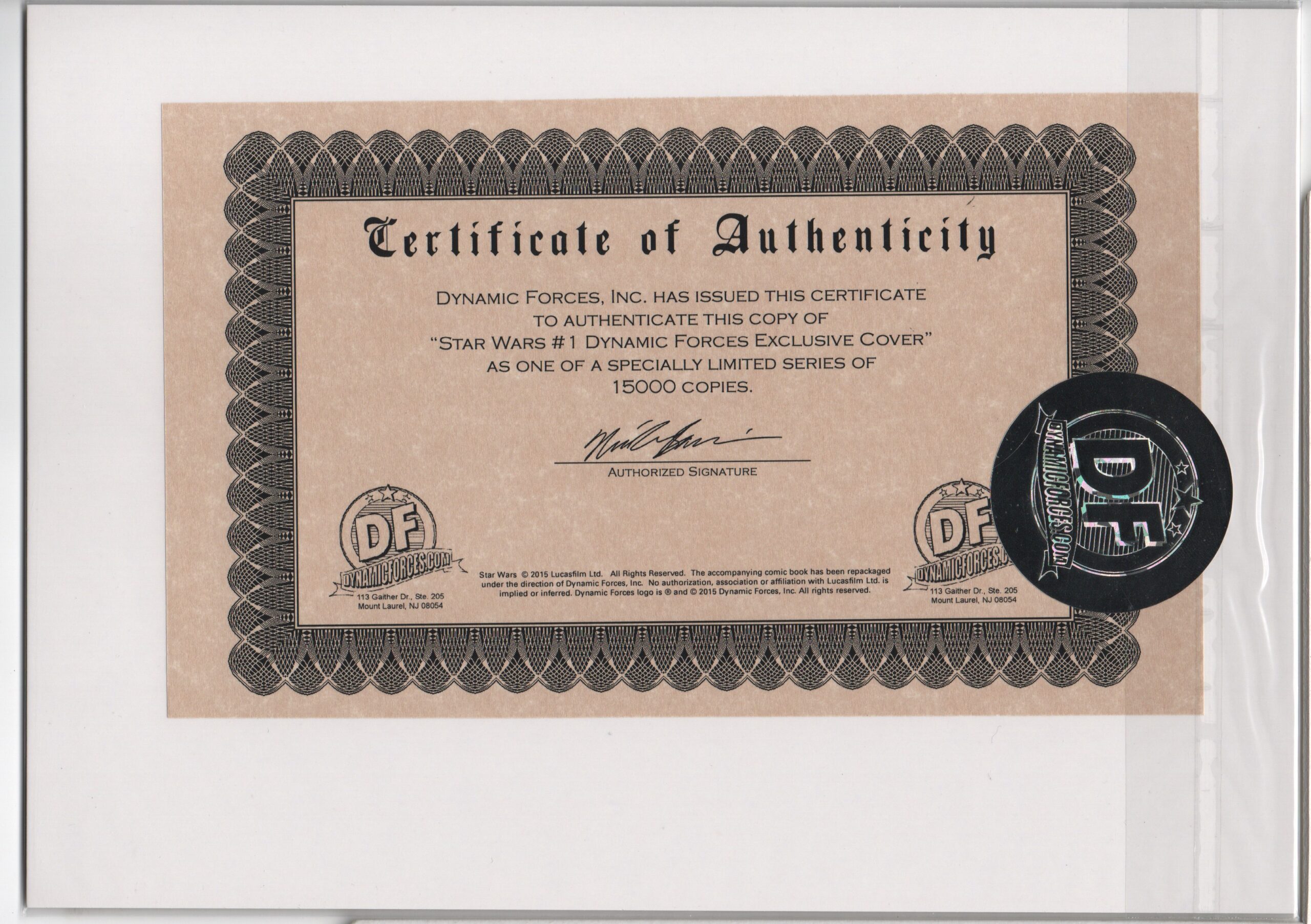 CERTIFICATE OF AUTHENTICITY ISSUED BY DYNAMIC FORCES