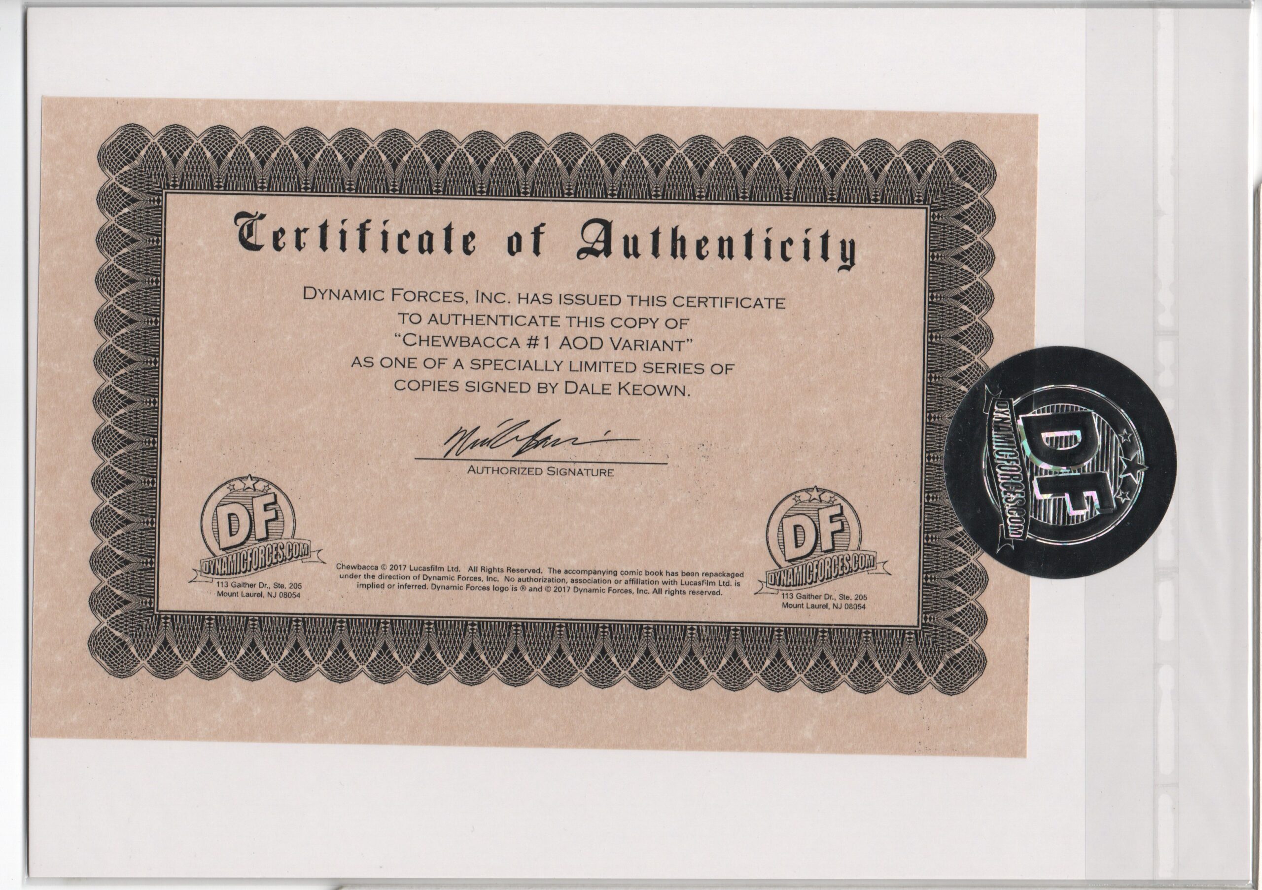 STAR WARS: CHEWBACCA #1 – AOD COLLECTIBLES EXCLUSIVE – SIGNED BY DALE KEOWN – W/COA – 2015