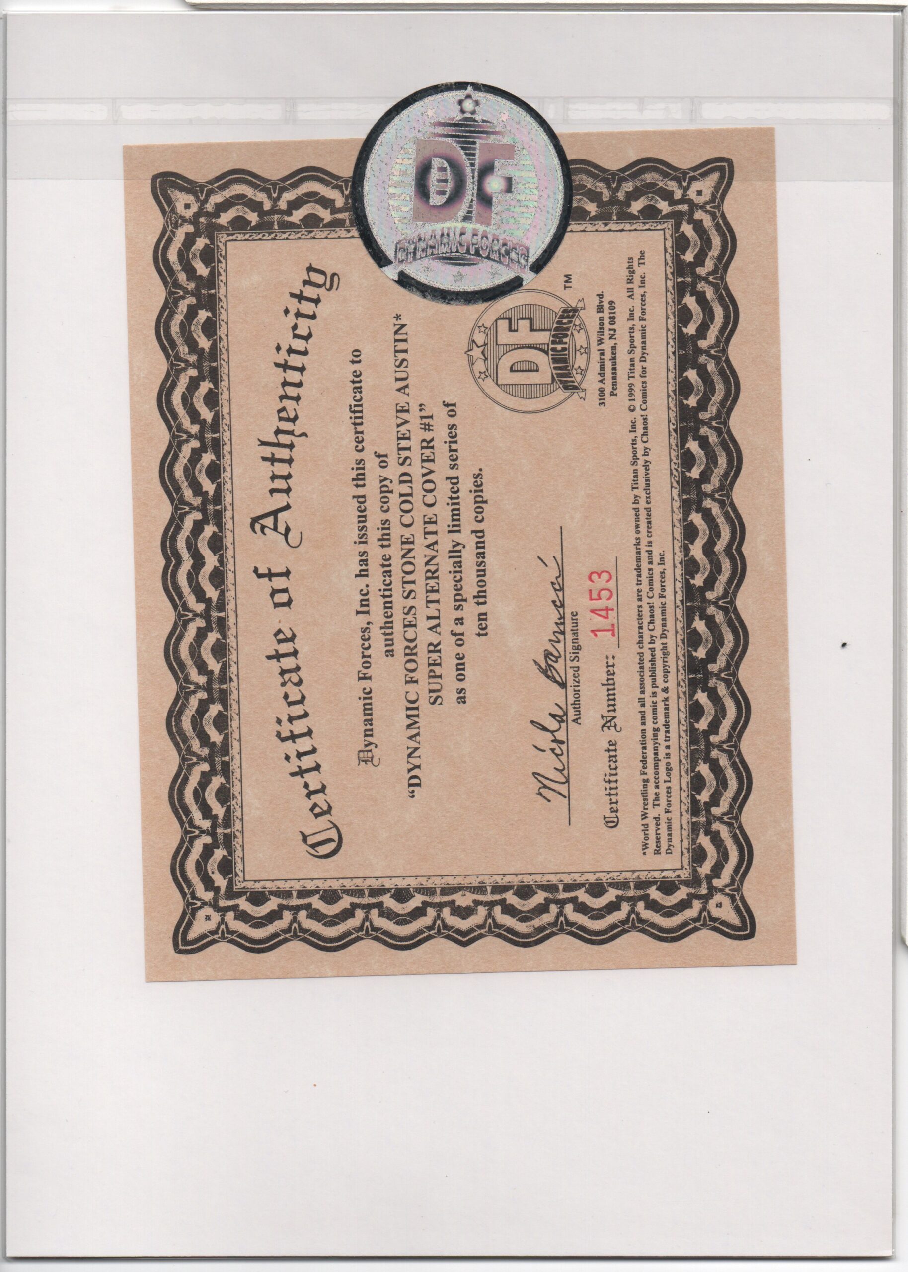 CERTIFICATE OF AUTHENTICITY ISSUED BY DYNAMIC FORCES