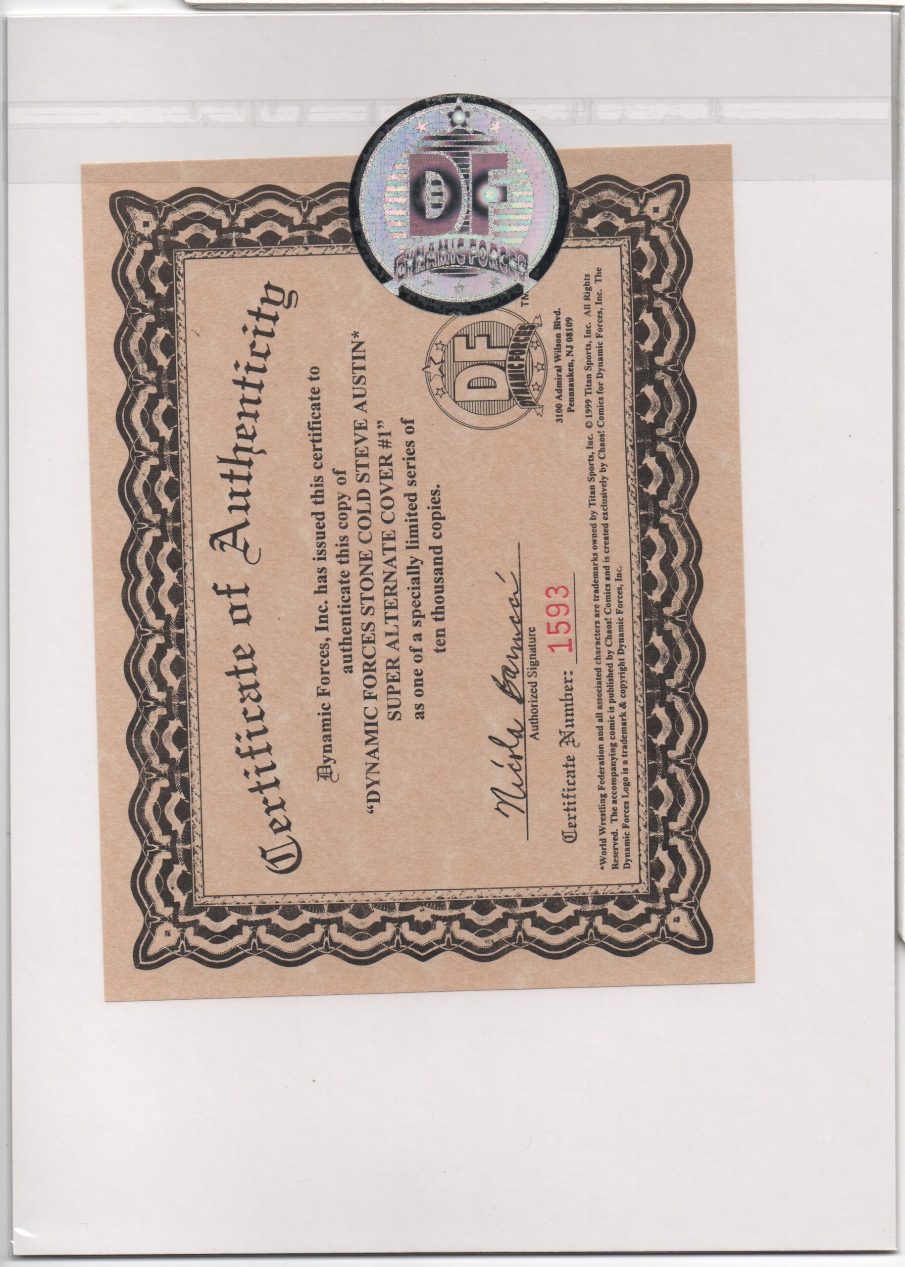 CERTIFICATE OF AUTHENTICITY ISSUED BY DYNAMIC FORCES