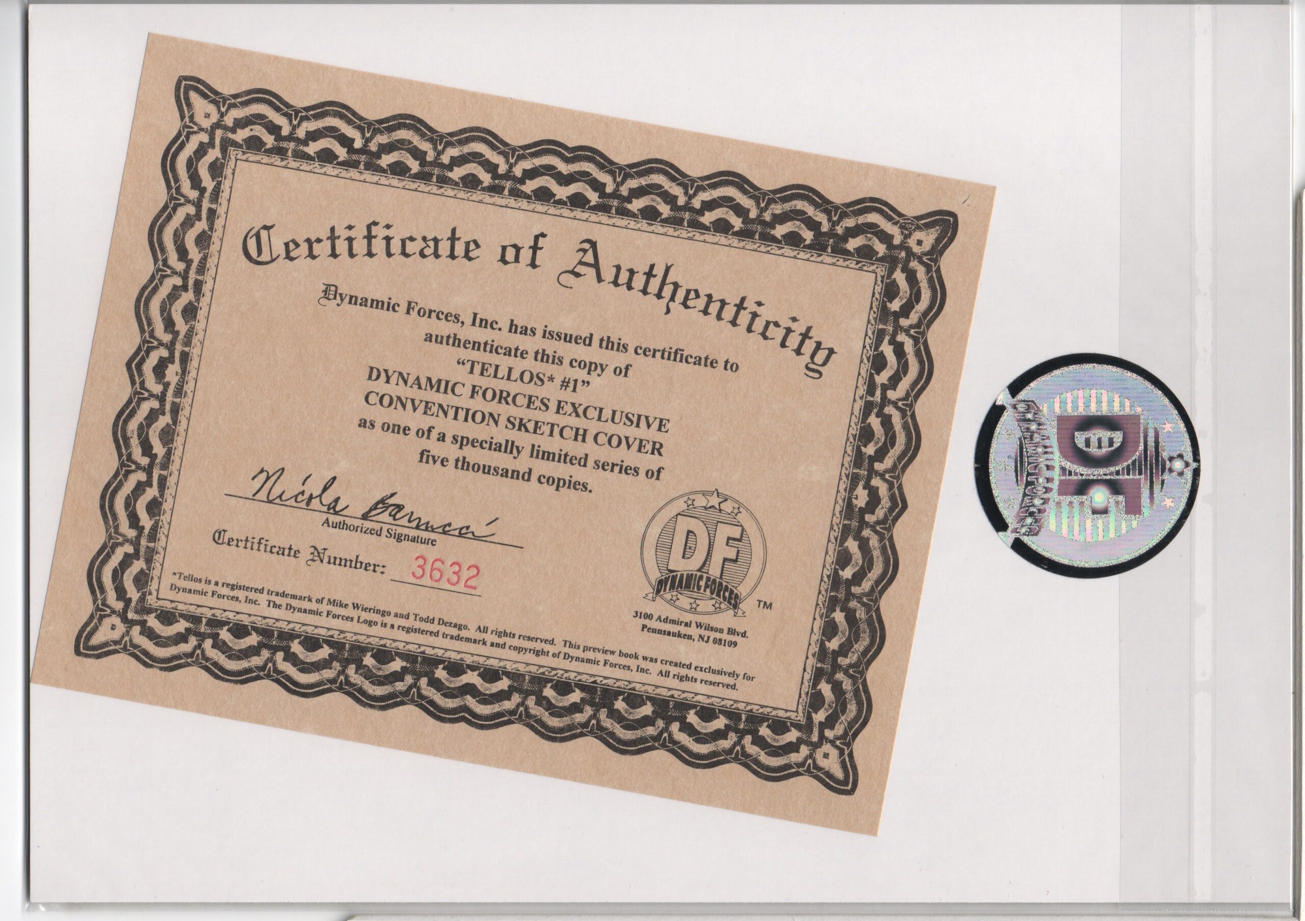 CERTIFICATE OF AUTHENTICITY ISSUED BY DYNAMIC FORCES