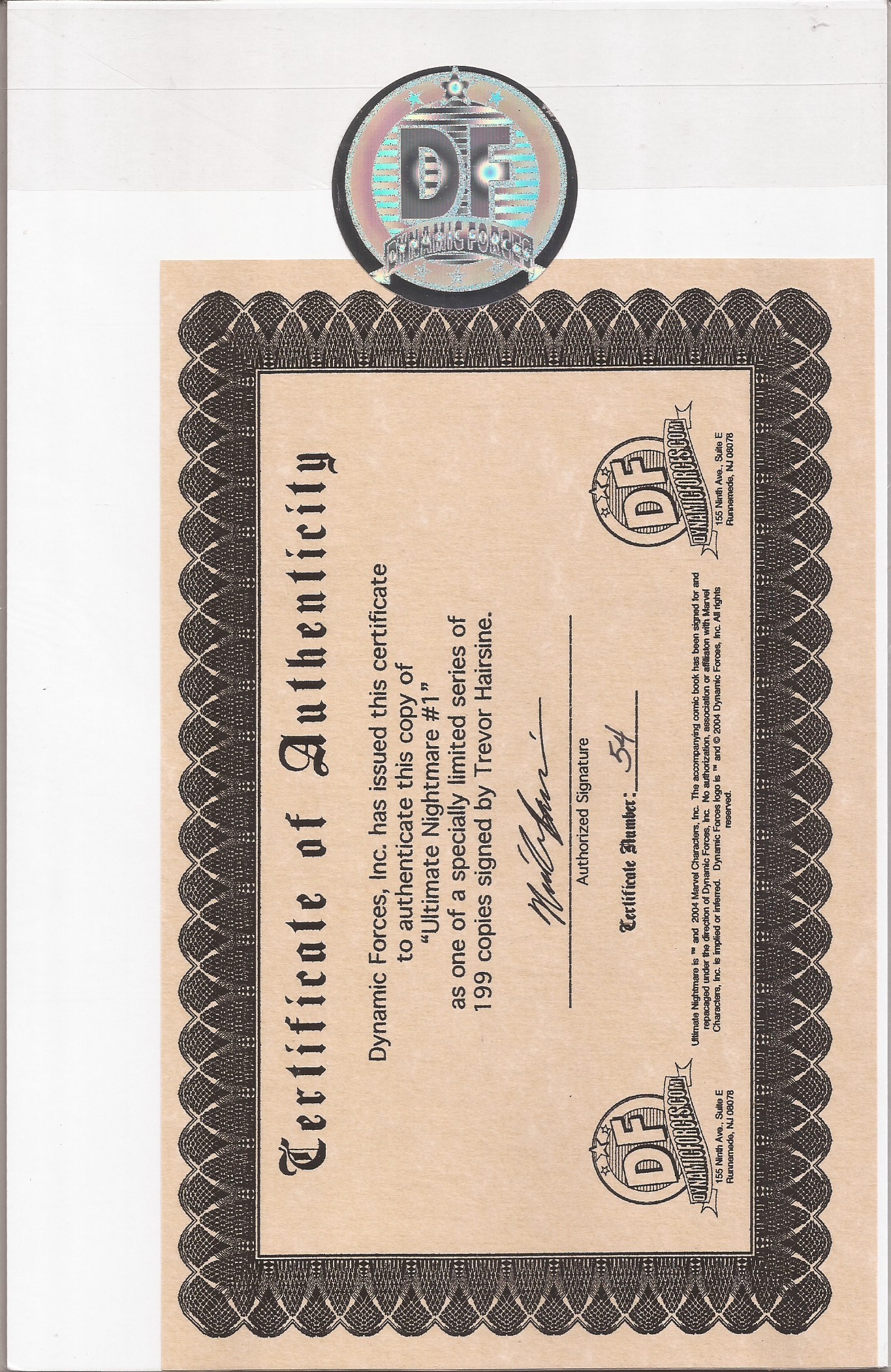 CERTIFICATE OF AUTHENTICITY ISSUED BY DYNAMIC FORCES