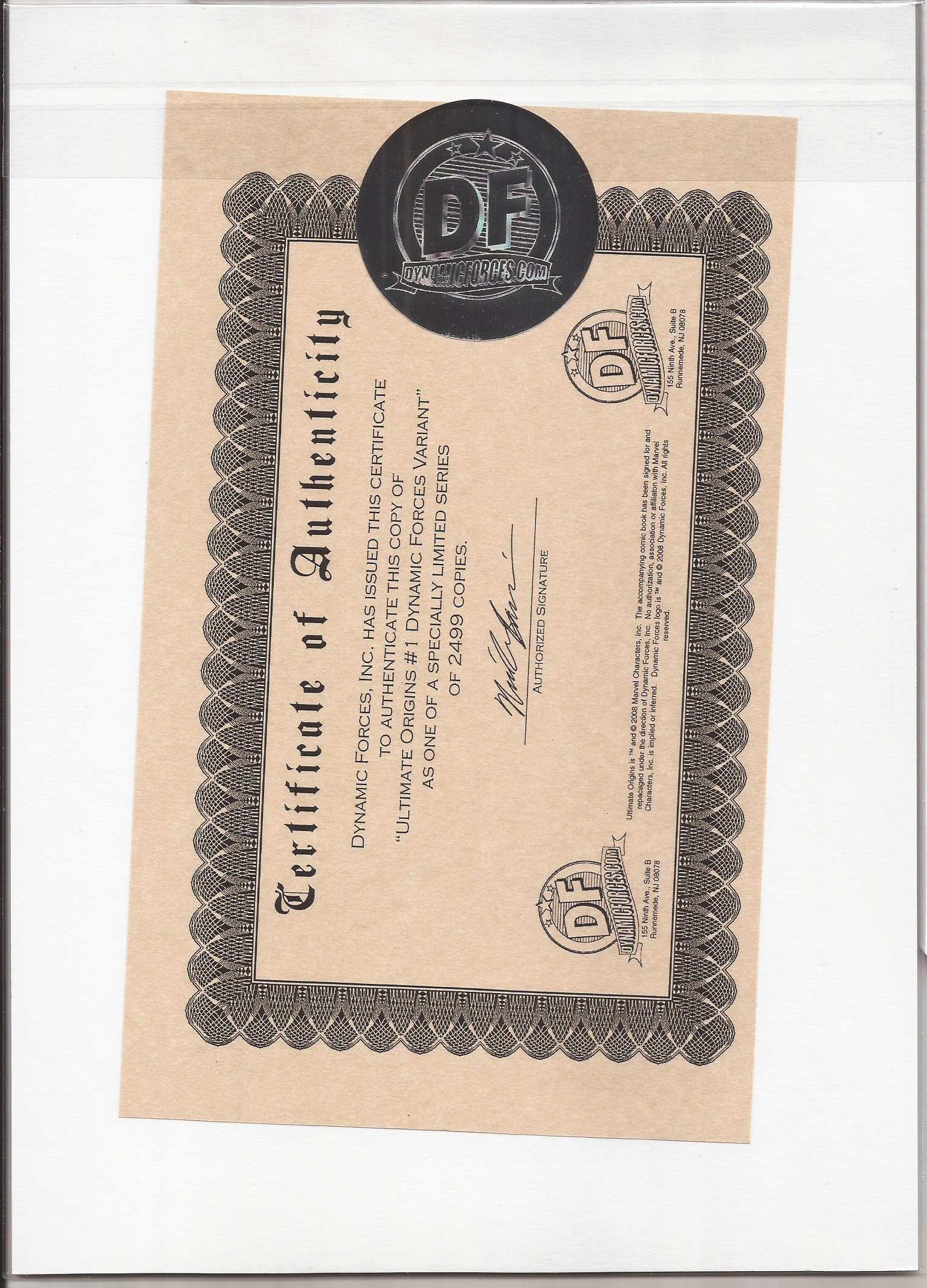 CERTIFICATE OF AUTHENTICITY ISSUED BY DYNAMIC FORCES
