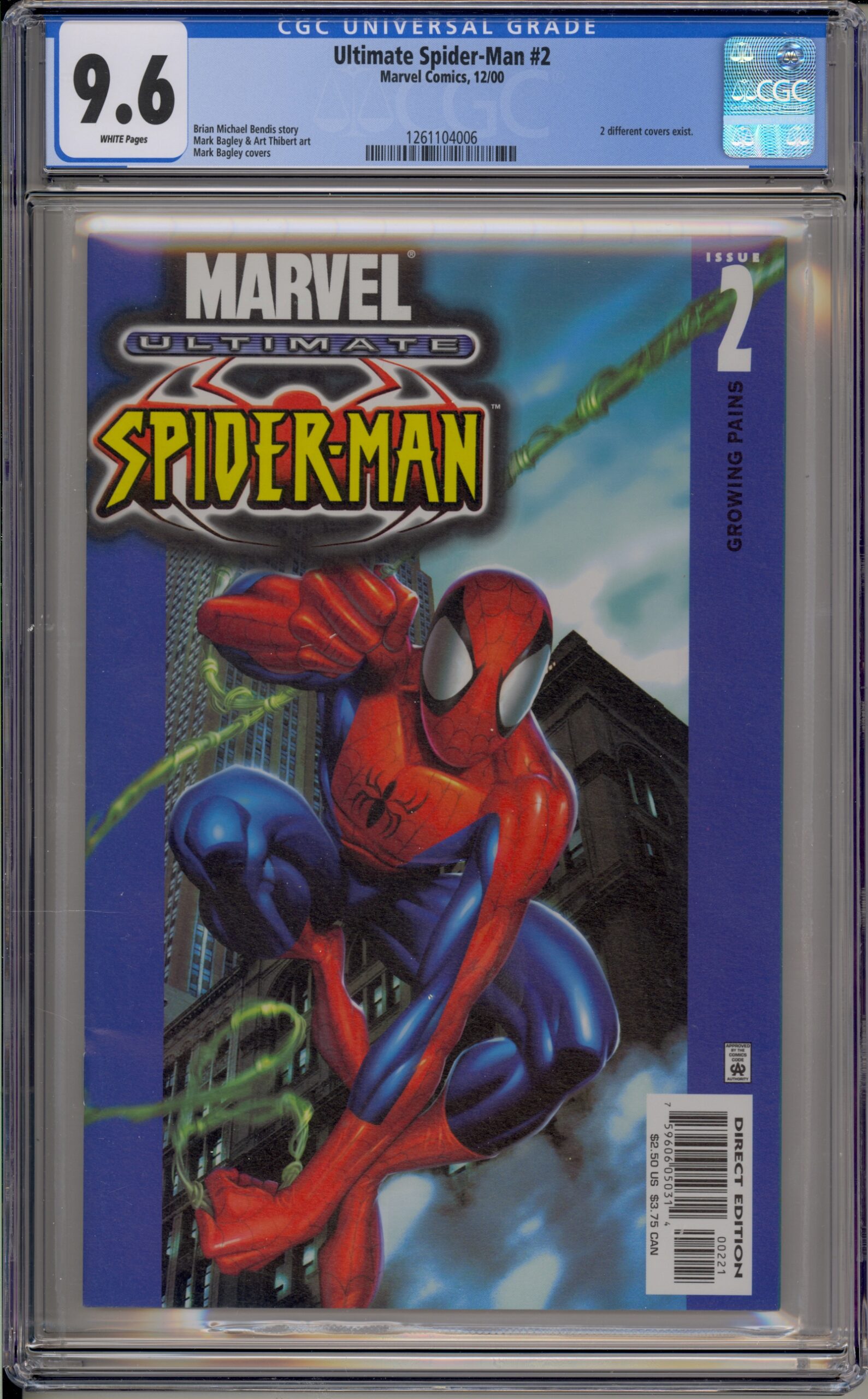 ULTIMATE SPIDER-MAN #2 – CGC 9.6 NM+ – JAE LEE 1 IN 4 VARIANT – GROWING PAINS – 2000
