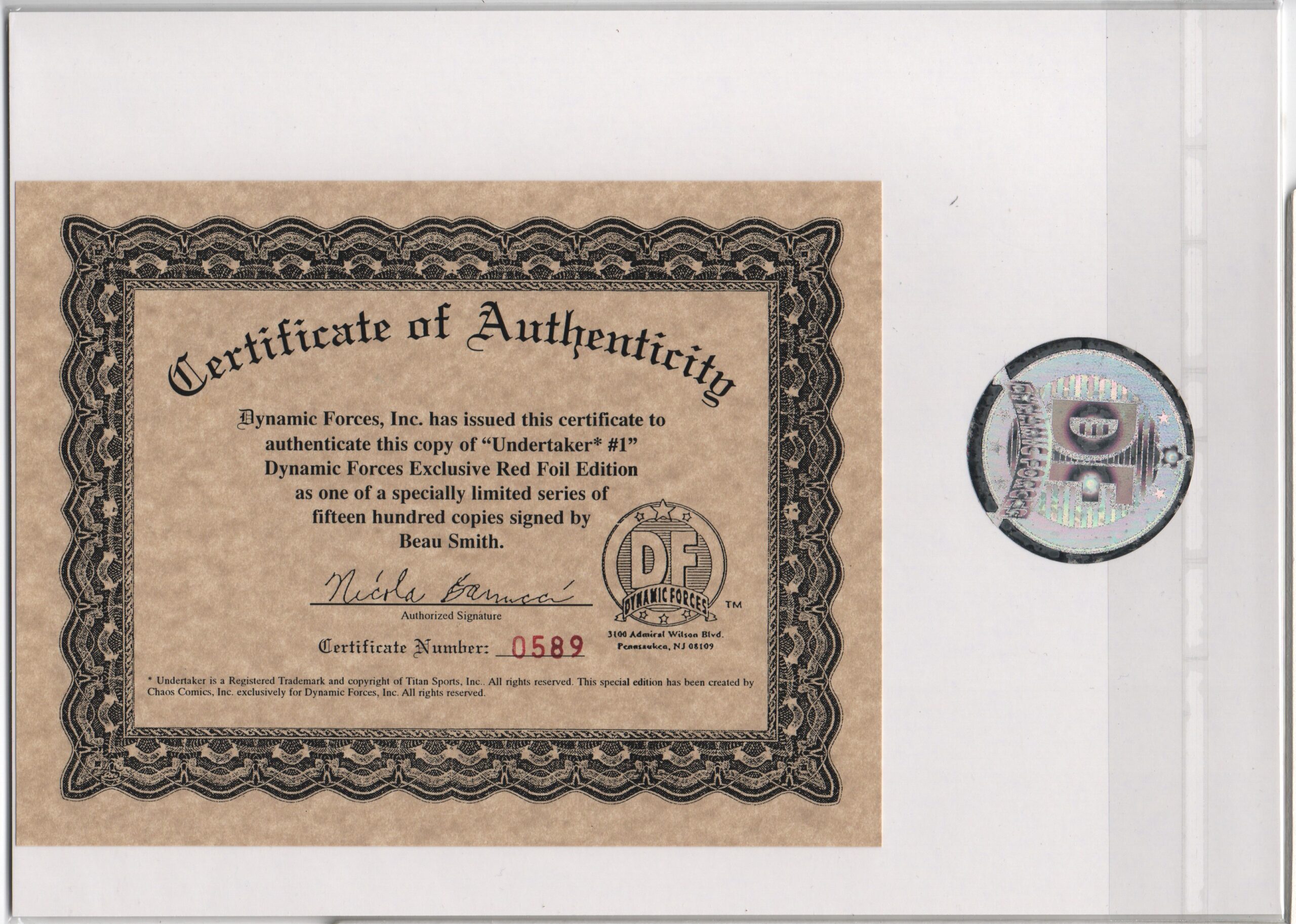 CERTIFICATE OF AUTHENTICITY ISSUED BY DYNAMIC FORCES