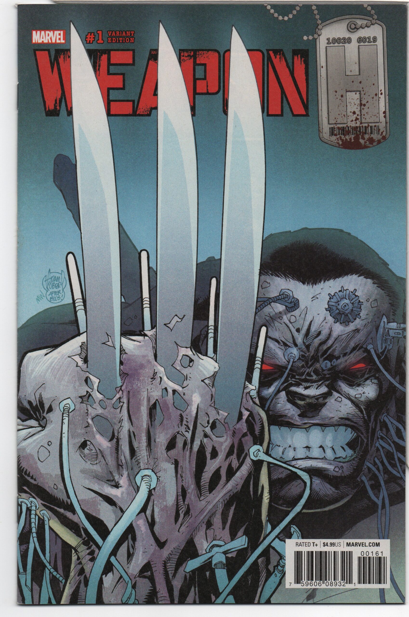 The Weapon X Program has done it again! At the cost of their own destruction, they’ve completed their biggest and possibly most dangerous experiment yet… With the strength of the Hulk and the rage and claws of Wolverine comes WEAPON H!