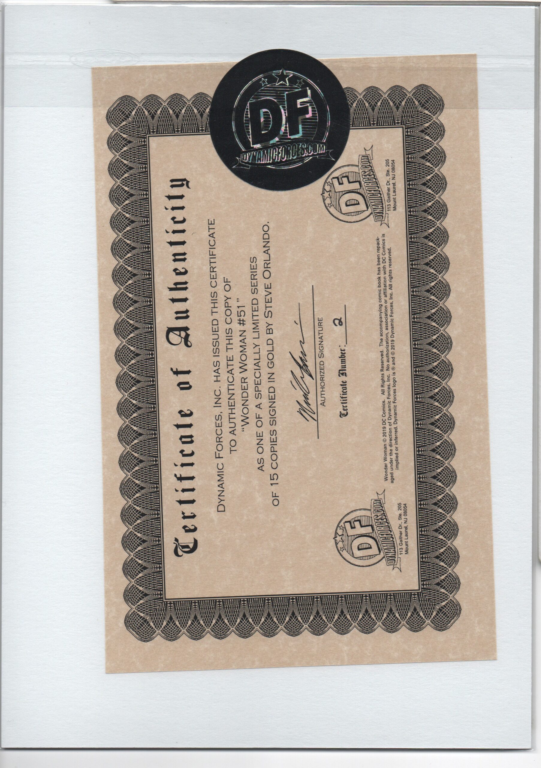 WONDER WOMAN #51 – GOLD SIGNATURE – STEVE ORLANDO – NUMBERED 04:15 – RARE – COA – STANLEY “ARTGERM” LAU COVER